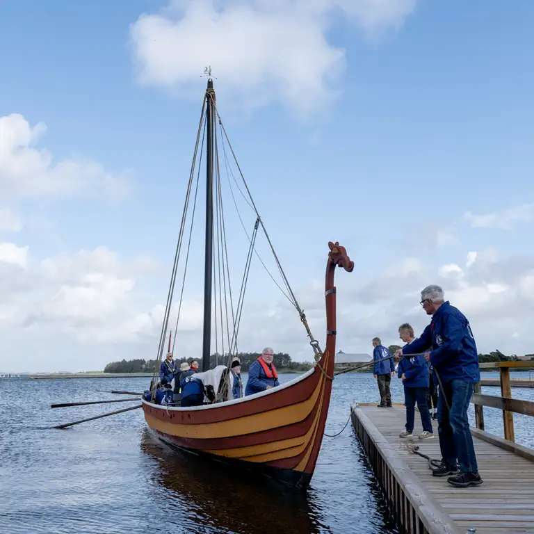 Vikingeskibslauget mødes for at bygge og reparere på vikingeskibet Thor og sjægten Sif og andre projekter.